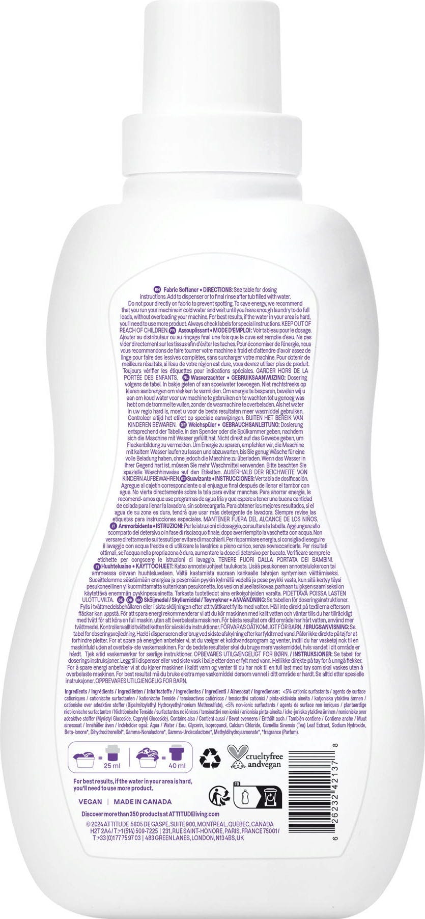 L'ammorbidente naturale di ATTITUDE rende il bucato piacevolmente morbido e profumato. Ideale per il lavaggio dei capi di neonati e dei bambini.