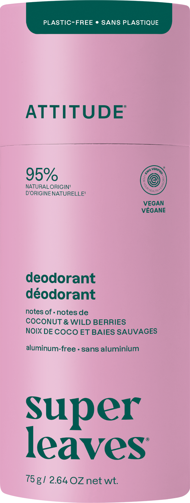 ATTITUDE Super leaves - Deodorante, Cocco e Frutti di Bosco, 85 g
