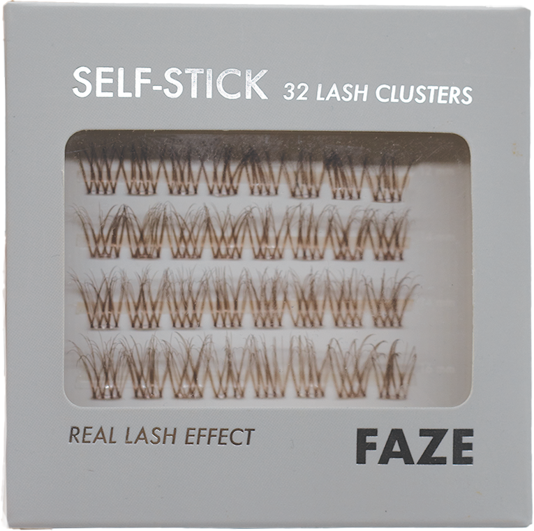Le ciglia finte autoadesive FAZE di colore marrone contengono 32 ciglia finte autoadesive di 12, 14 e 16 mm di lunghezza.
