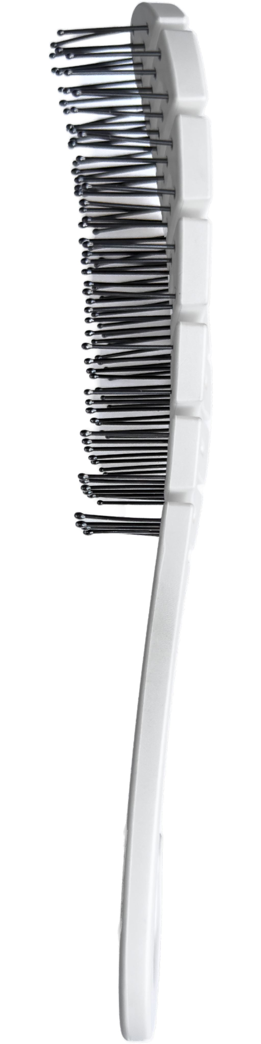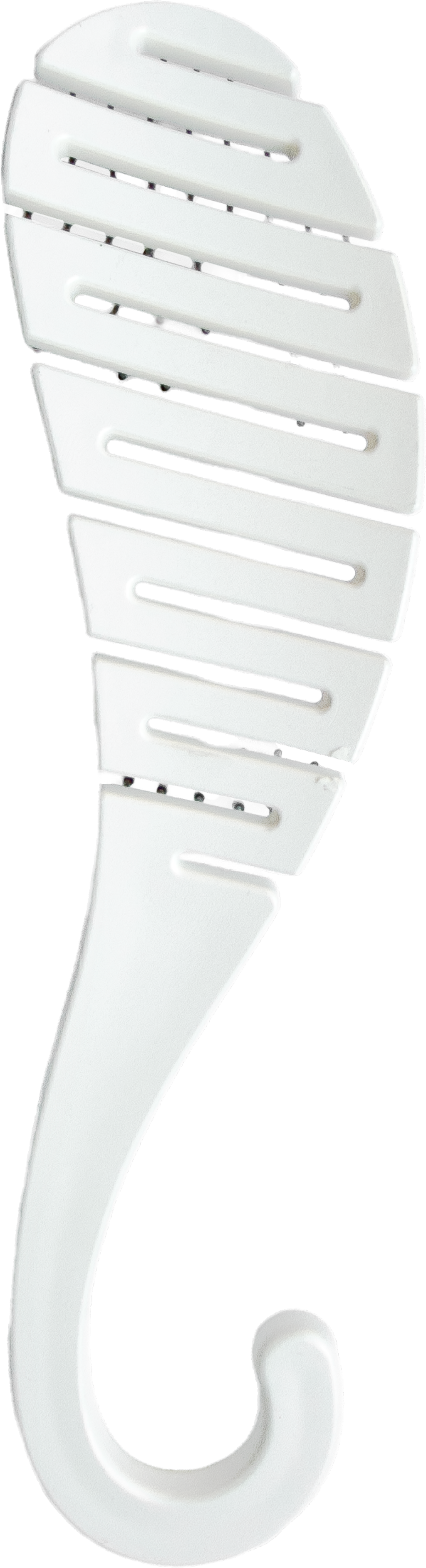La spazzola HangTight Brush presenta delle setole flessibili con punte arrotondate scorrono tra i capelli con particolare delicatezza, districandoli senza sforzo e senza dolore. L'impugnatura ergonomica garantisce una presa sicura, mentre la sua forma a uncino assicura che la spazzola rimanga esattamente dove la desideri: sull'asta della doccia, sul portasciugamani o su un gancio del bagno.