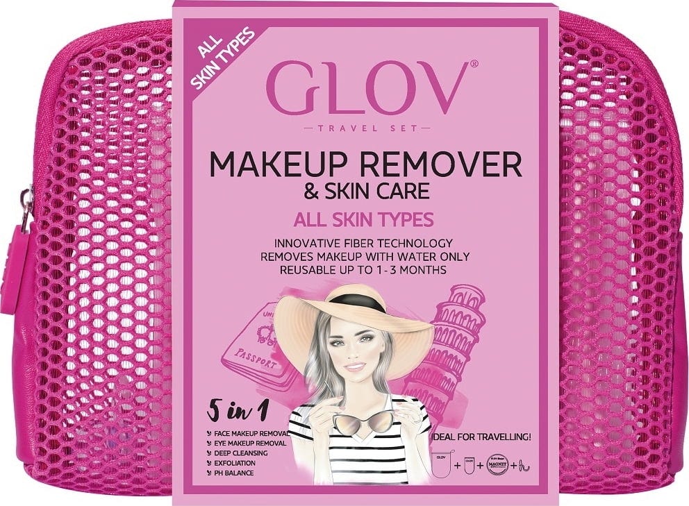 Con questo kit per la rimozione del trucco sarete perfettamente preparati per qualsiasi viaggio. Il guanto per la rimozione del make-up non richiede prodotti di detersione aggiuntivi, occorre semplicemente l'acqua. Sarà sufficiente inumidire il guanto per la pulizia e si parte!