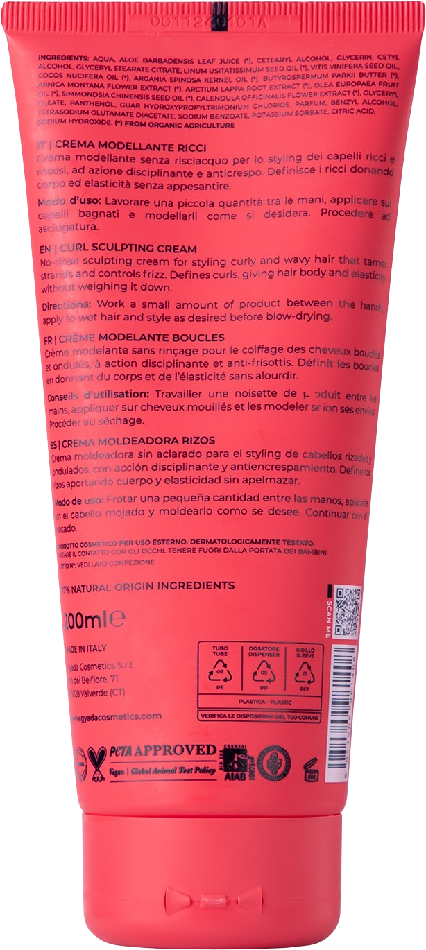La crema modellante ricci Gyada Cosmetics non contiene alcool, coloranti o conservanti, parabeni, siliconi o petrolati. È inoltre vegan, cruelty free e nickel tested.