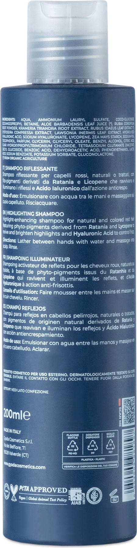GYADA Cosmetics Hyalurvedic Shampoo Riflessante Red Hair, 200 ml