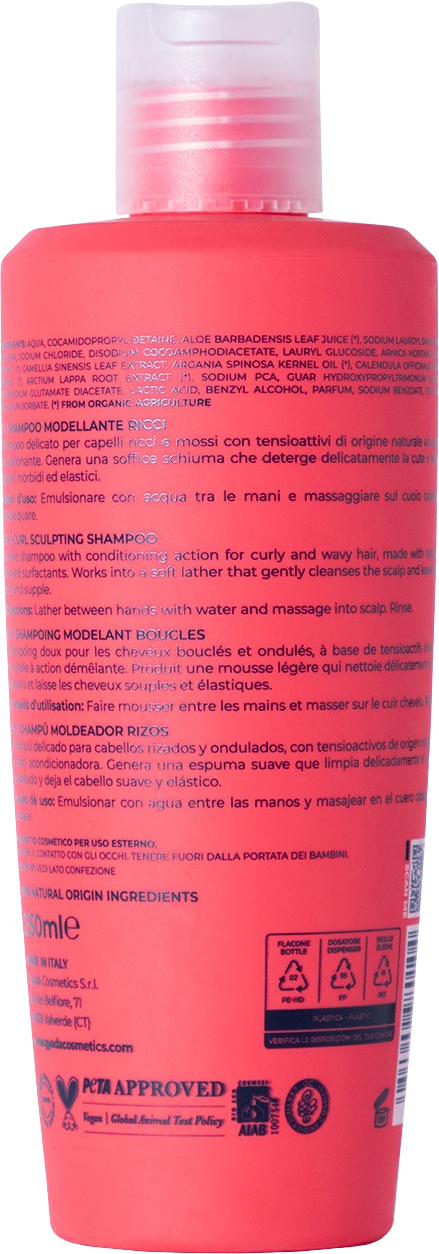 Lo shampoo modellante di Gyada Cosmetics è pensato appositamente per disciplinare e ammorbidire i capelli ricci e mossi durante la detergenza. Ha un'azione elasticizzante e illuminante e, grazie alla sua formua a base di tensioattivi delicati, deterge delicatamente il cuoio capelluto, donando volume alle radici e morbidezza alla chioma.