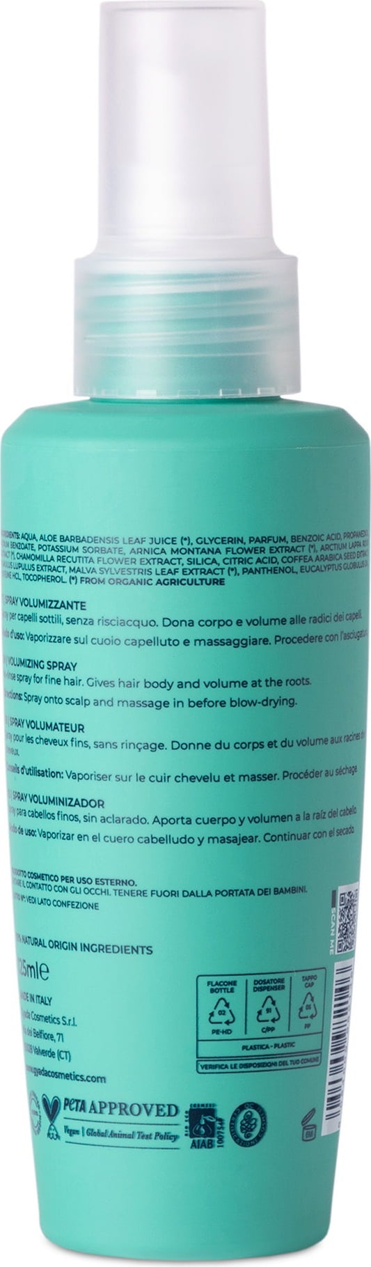 Lo spray volumizzante Gyada Cosmetics è ideale per dare un effetto pieno e consistente ai capelli sottili, lisci e privi di volume, che tendono ad appiattirsi subito dopo l’asciugatura.