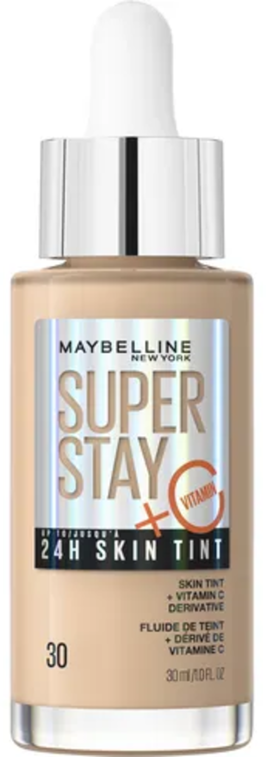 Il fondotinta Super Stay 24H Skin Tint di Maybelline ha una coprenza da leggera a media grazie ai pigmenti simili alla pelle contenuti e ti consente di creare look completamente naturali! Inoltre, la sua formulazione vegana è stata arricchita con preziosa vitamina C, che può ridurre le macchie e donarti una pelle radiosa! Il risultato di Skin Tint dura fino a 24 ore.