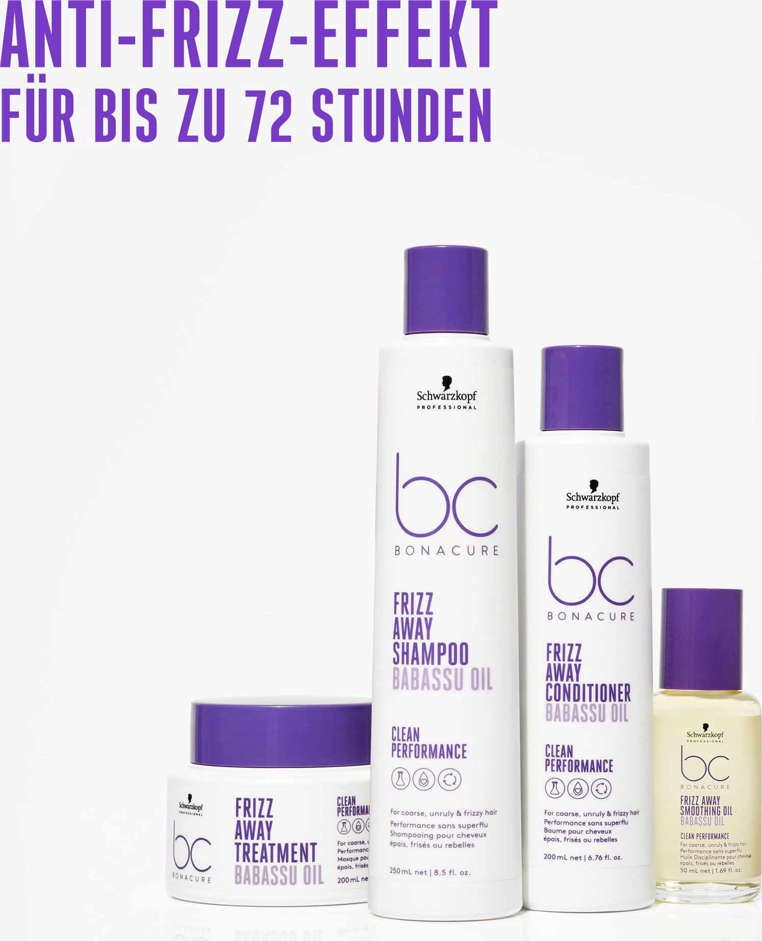 Il Bonacure - Frizz Away, Babassu Oil Shampoo di Schwarzkopf Professional è perfetto per soddisfare le esigenze specifiche dei capelli difficili da domare, crespi, ribelli o fragili.