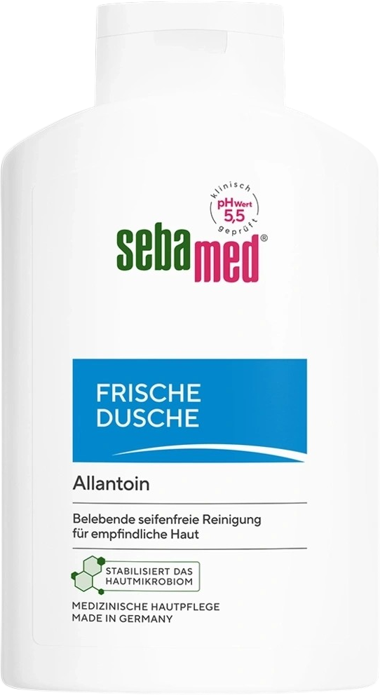 Il Gel Doccia Rinfrescante di sebamed può supportare la barriera protettiva della pelle grazie al suo valore del pH di 5,5. La formula delicata e rinfrescante, arricchita con allantoina e acido lattico, deterge delicatamente e ha un effetto idratante. Infine, il gel doccia è adatto per l'uso quotidiano su pelli sensibili e delicate.