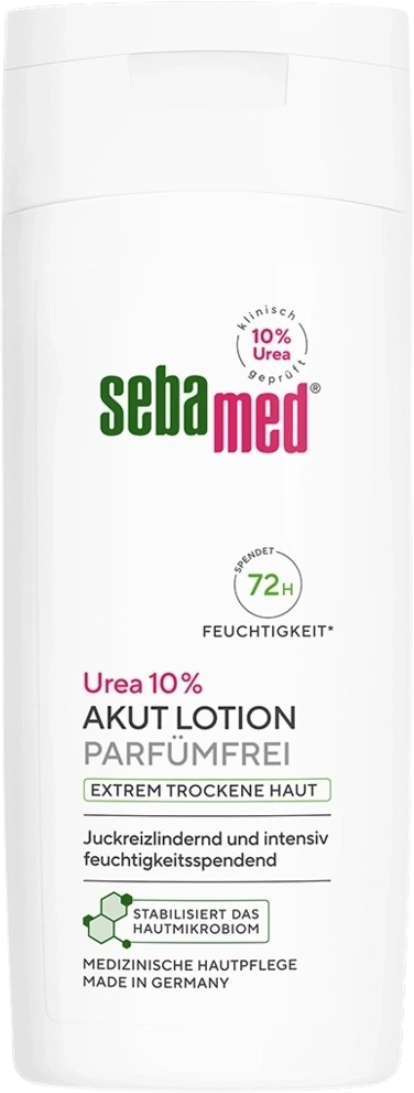 La Lozione Corpo Idratante, Urea al 10% e senza Profumazione per pelli estremamente secche e stressate è formulata con urea altamente concentrata e un complesso idrolipidico a base di olio di mandorle dolci naturale e poliolo. Questa composizione fornisce un'idratazione particolarmente intensa e nutre la pelle in profondità.