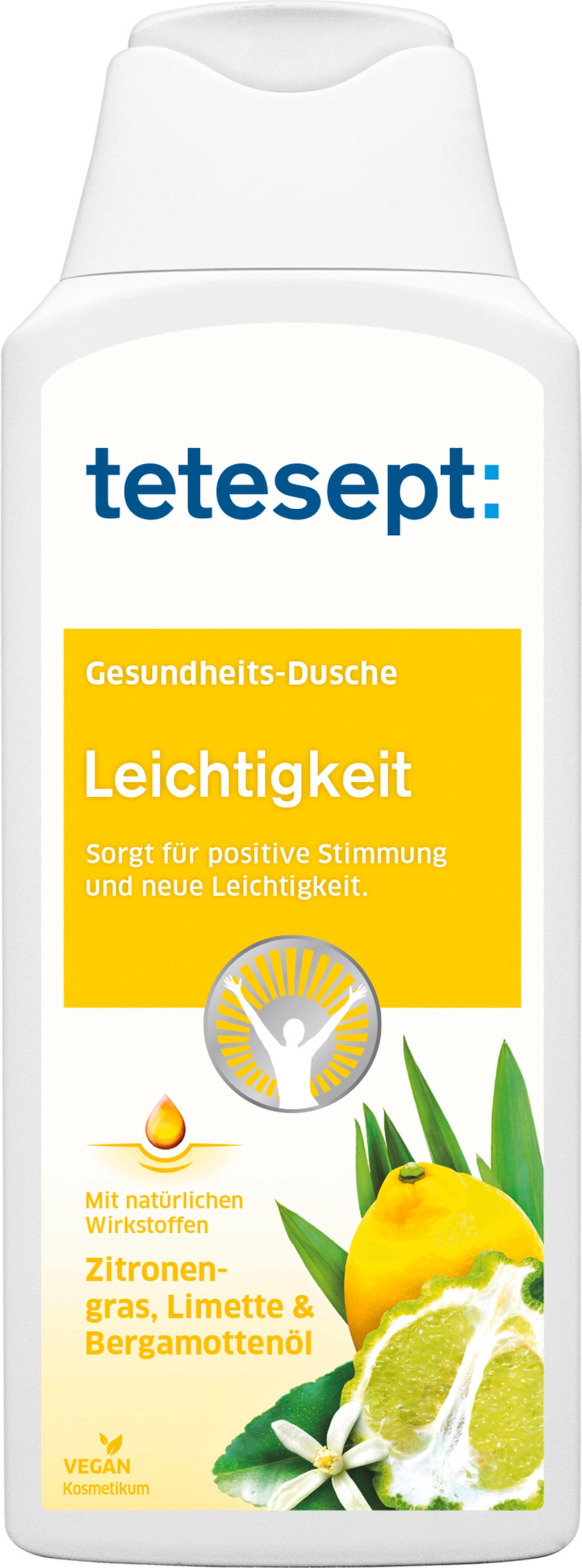 Prenditi la vita con calma! Il Docciaschiuma - Leggerezza di tetesept porta una dose di leggerezza nella tua vita quotidiana. La formula delicatamente schiumogena è a pH neutro e vegana, per una detersione e una cura delicate. Gli oli essenziali di citronella, lime e bergamotto donano una fragranza fresca e dolce.