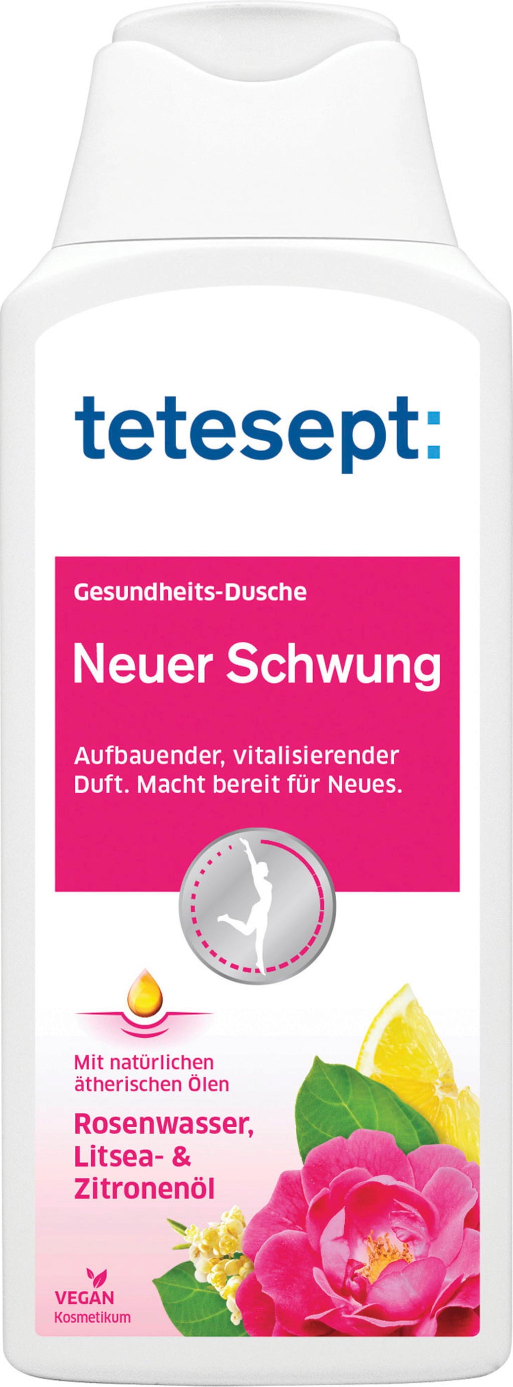 Il Docciaschiuma - Nuovo Slancio di tetesept offre una delicata esperienza di coccole e una deliziosa fragranza. Gli oli essenziali naturali di Litsea cubeba e limone sono arricchiti dall'aromatica acqua di rosa damascena.