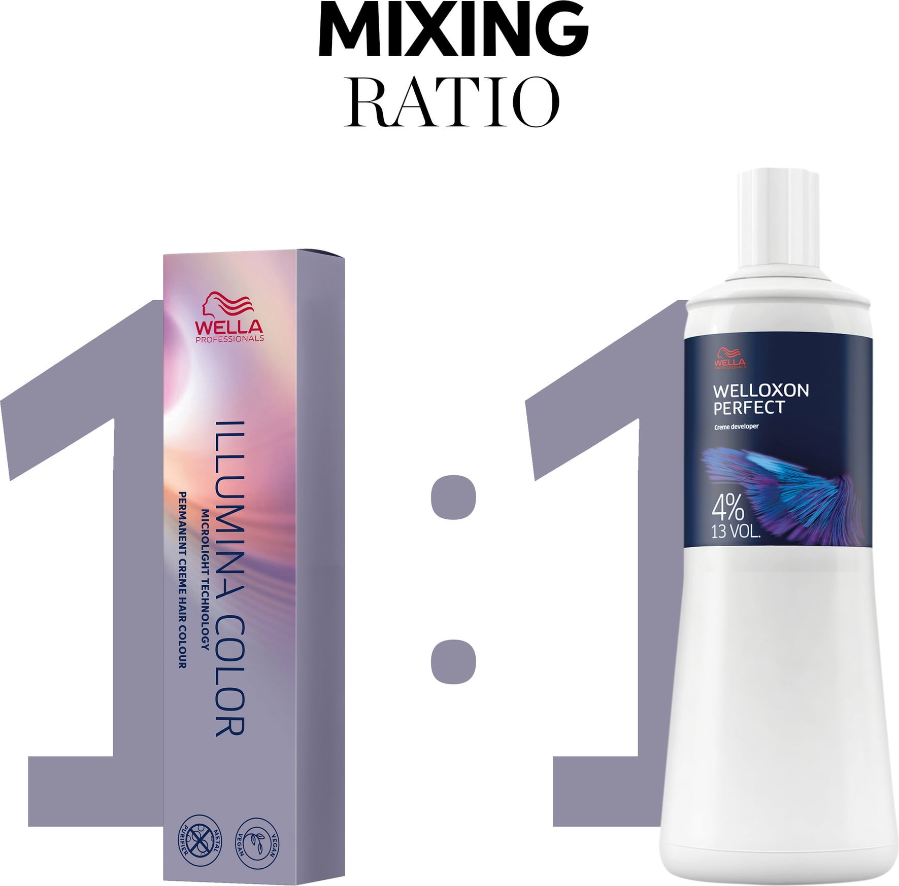 - 3 toni di schiaritura: 1 parte di Illumina, 1 parte di Welloxon Perfect 12%